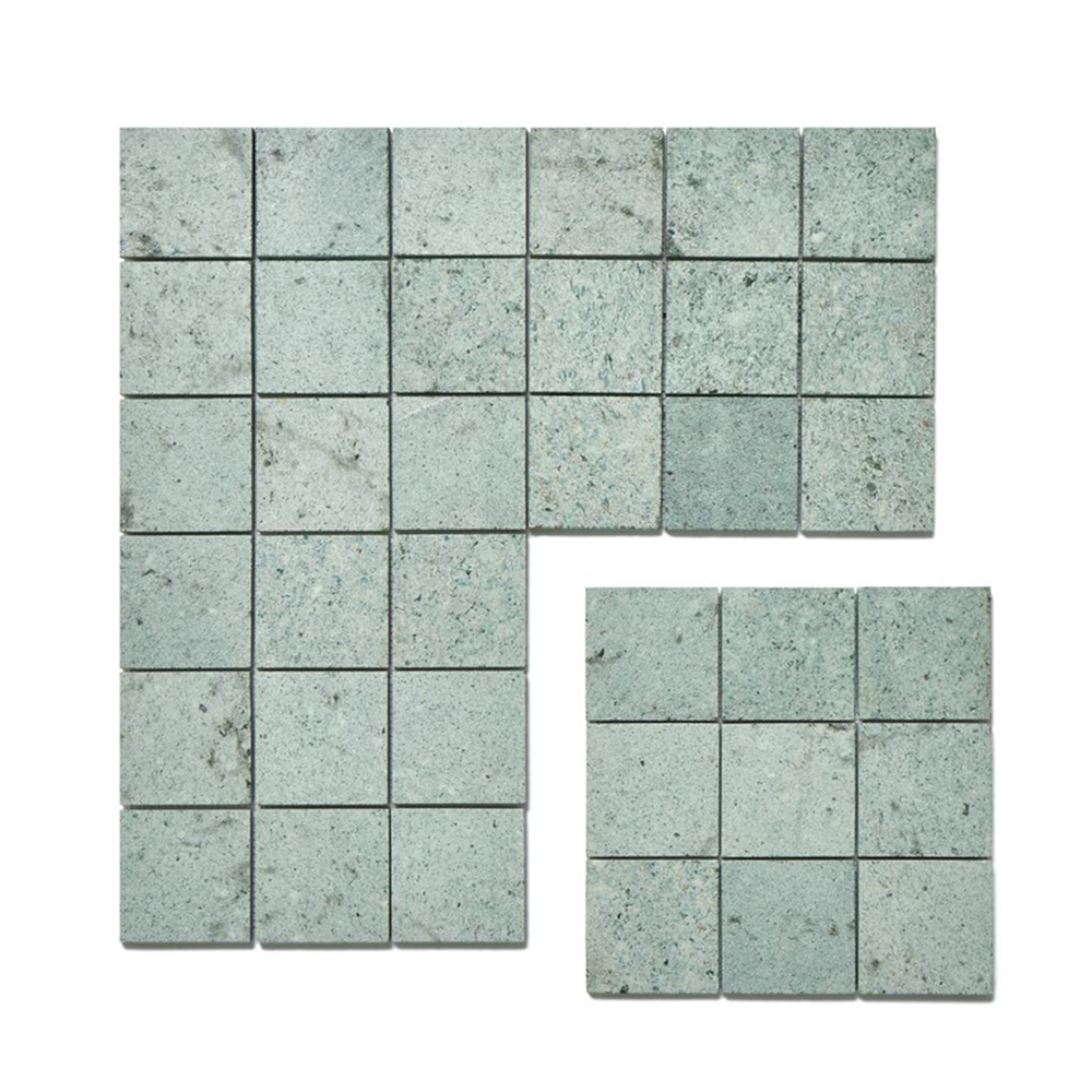 Pierre naturelle de Bali. Présenté dans un format de 10×10 cm, finition entièrement naturelle qui transmet authenticité. Cette pierre, avec sa texture subtile et sa couleur verte caractéristique qui change au contact de l’eau est idéale pour n’importe quelle zone car c’est un revêtement élégant et dynamique. Pour ses caractéristiques techniques est un matériau qui peut être installé Intérieur, Extérieur, Salle de bain, Douche, Cuisine et Piscine
